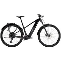 The Trek Powerfly+ 4 is arugged hardtail e-MTB with serious range and practical kit. With 120mm SR Suntour suspension, Shimano CUES 10-speed gears and full commuter equipment, it’s ready for trails, towpaths and daily miles.Key Features:Alpha Platinum Aluminium frame, Boost148, RIB 2.0SR Suntour XCR 34 air fork, 120mm travelN/A – hardtail frameShimano CUES U6000 1×10 drivetrainTektro HD-M275 hydraulic disc brakes29″ wheels with 2.40″ Bontrager LT4 tyresEquipped with mudguards, rack, lights & kickstandAvailable with 0% APR financeDrive Information:Motor: Bosch Performance Line CX, 85NmBattery: Bosch PowerTube 800Wh (Smart System)User Interface: Bosch Purion 200 displayThe Powerfly+ 4 Equipped 800 Wh Gen 5 is built for riders who want extra distance and everyday usability in one capable package. The Alpha Platinum Aluminium frame is strong and trail-ready, with Boost148 rear spacing and a 12mm thru axle for added stiffness and control. Trek’s Removable Integrated Battery (RIB 2.0) system keeps the 800Wh Bosch PowerTube neatly housed inside the frame while making removal straightforward for charging.At its heart is the Bosch Performance Line CX motor, delivering up to 85Nm of torque for confident climbing and steady assistance on longer rides. The Smart System integrates smoothly with the bike’s electronics, and the large 800Wh battery supports extended trail sessions, commutes or mixed-surface adventures with fewer stops to recharge.Up front, the SR Suntour XCR 34 air fork offers 120mm of travel to smooth roots, ruts and uneven tracks. A hydraulic lockout lets you firm it up for efficient pedalling on smoother surfaces or road sections.Shimano CUES U6000 1×10 gearing, with an 11–48T LINKGLIDE cassette and 36T chainring, provides a wide and durable gear range designed to handle the added torque of an e-bike. Shifting is consistent and built for longevity. Tektro HD-M275 hydraulic disc brakes deliver dependable stopping power in varied conditions.Rolling on 29″ Bontrager Connection double-wall rims and 2.40″ Bontrager LT4 Expert tyres, the Powerfly+ balances grip and rolling efficiency. Reflective tyre strips add visibility in low light.What sets this model apart is its practical equipment. It comes fitted with mudguards, integrated lights, a rear rack and a kickstand, making it just as suited to daily commuting and errands as it is to weekend trail rides. Motor Armour protection helps shield the drive unit from impacts, and guided internal routing keeps cables tidy and protected.If you’re looking for a hardtail e-bike with serious range, reliable components and everyday versatility, the Powerfly+ 4 Equipped 800 Wh Gen 5 is ready to take you further, on or off the beaten path.